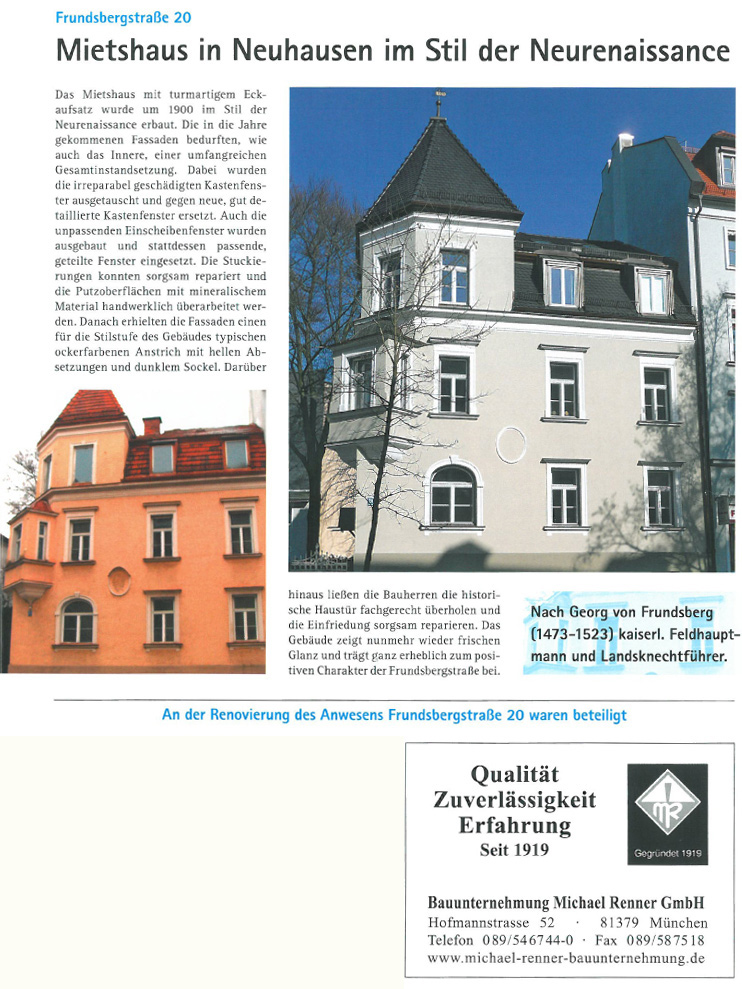 In München und Umgebung konnte die Michael Renner Bauunternehmung bereits einige Preise für hoch anspruchsvolle Fassaden und komplexe Architekturen erringen. Auf Anfrage lassen wir Ihnen gerne weiterführende Informationen zu den einzelnen Objekten und deren jeweilige Anforderungsprofile zukommen.